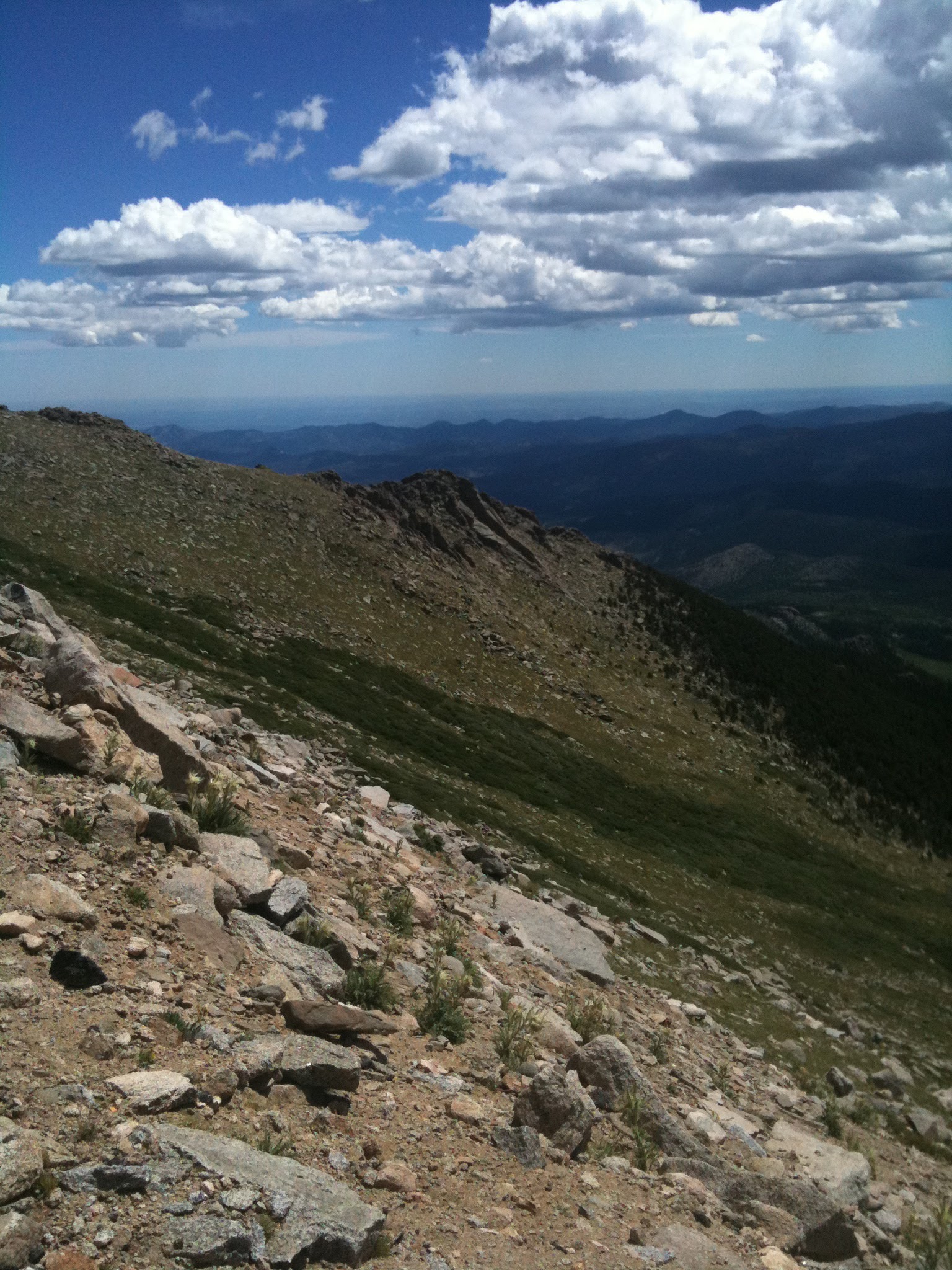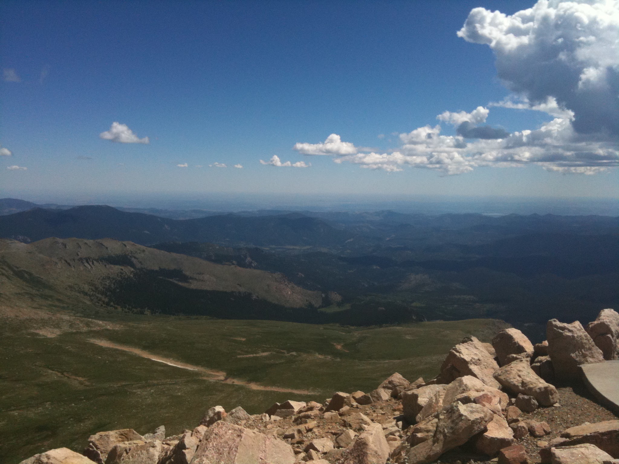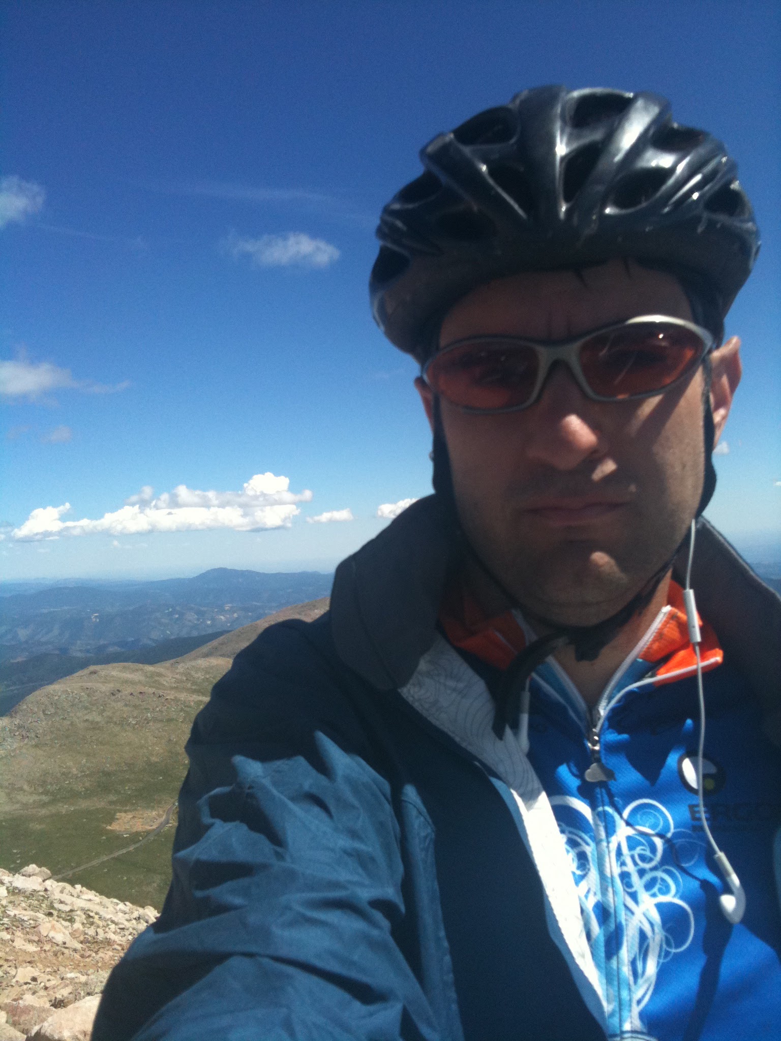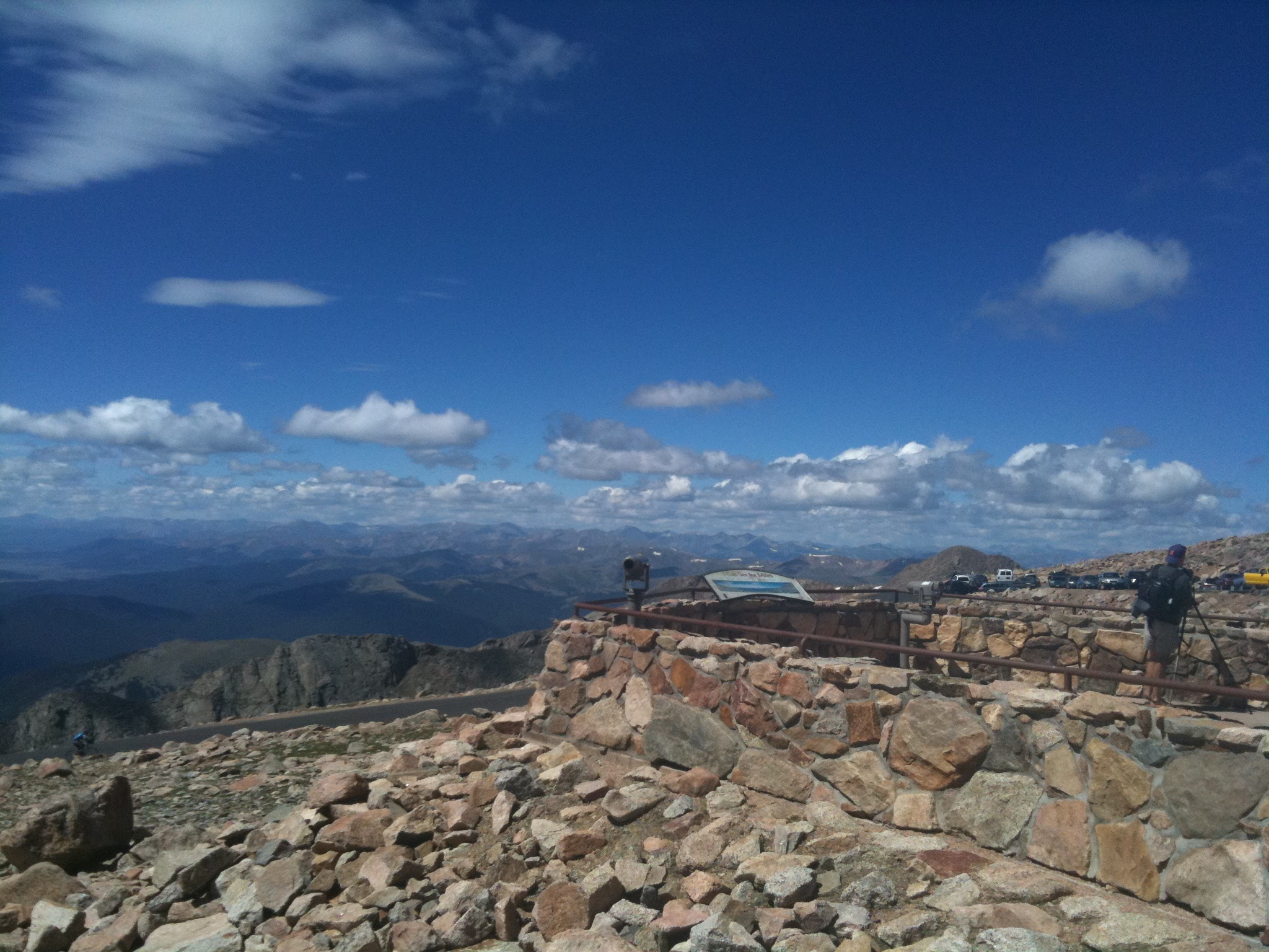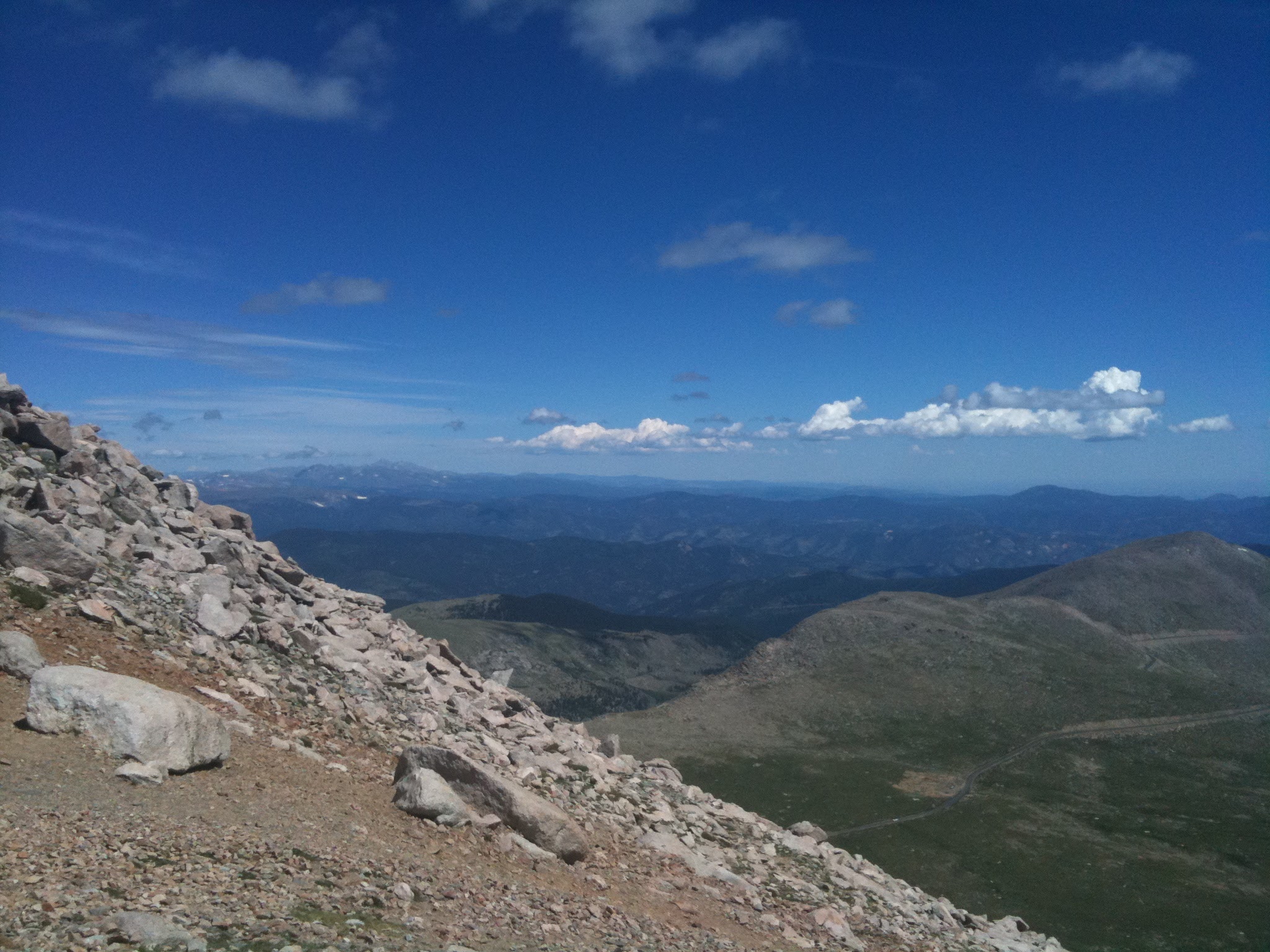 I didn’t know how I would feel at elevations greater than 12,000ft so I road the 1st 3/4 of the route conservatively, but I felt surprisingly good at the top, finishing with a time of 3:14. Though the temperatures in Denver were in the 90Fs, the summit temperature was hovering around 50F and as I turned to head back down, the time being just before noon, the clouds were steadily starting to build. Aside from several very tight banked switch backs that you could carry a lot of speed through, the downhill was actually quite mundane and very choppy at times.